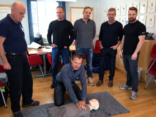 Under fredagsförmiddagen utbildar Ulf Solgren från Hultsfred delar av vår servicepersonal i Hjärtlungräddning inklusive kurs i vår nyinköpta hjärtstartare.